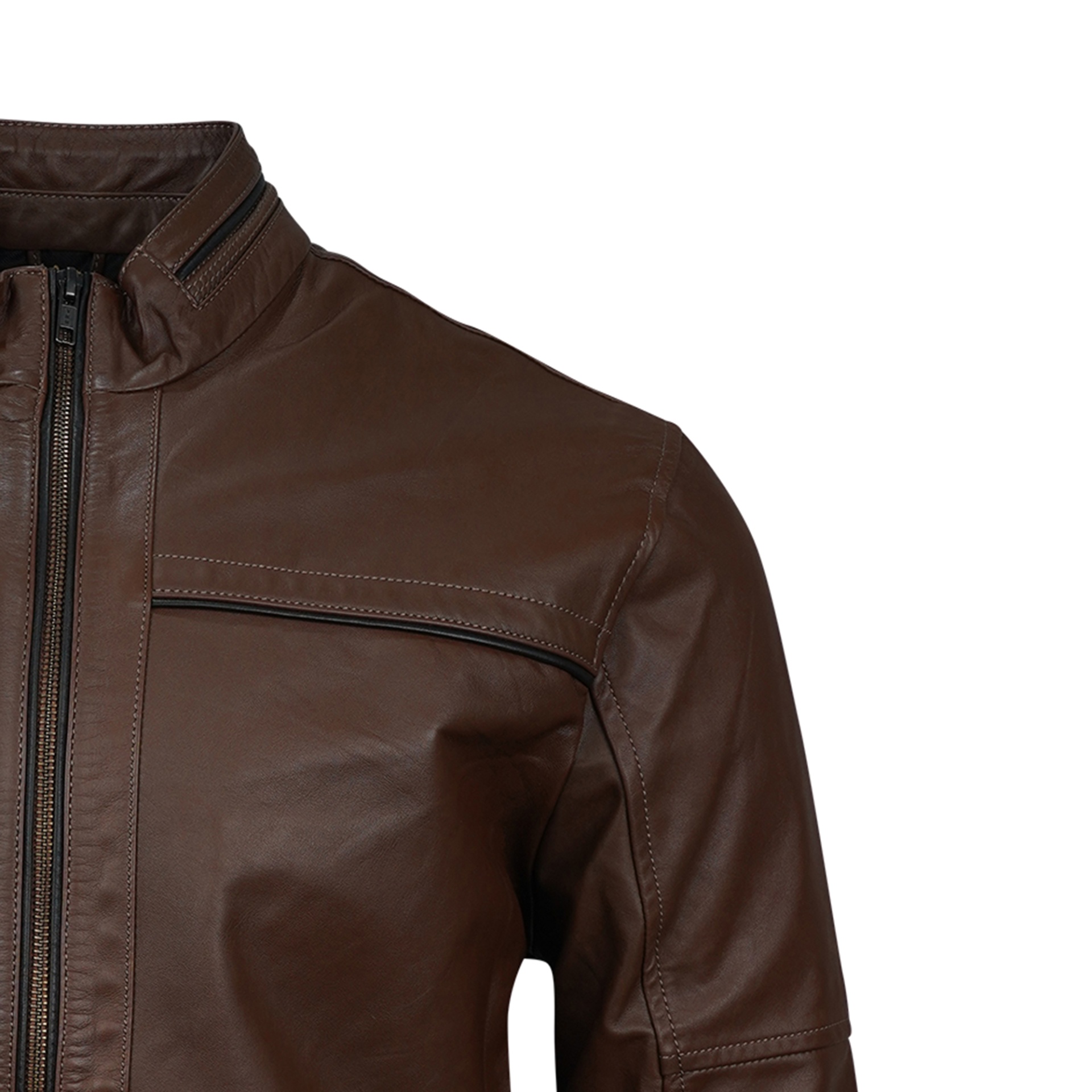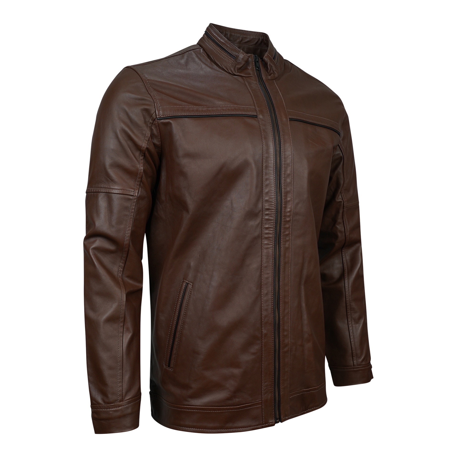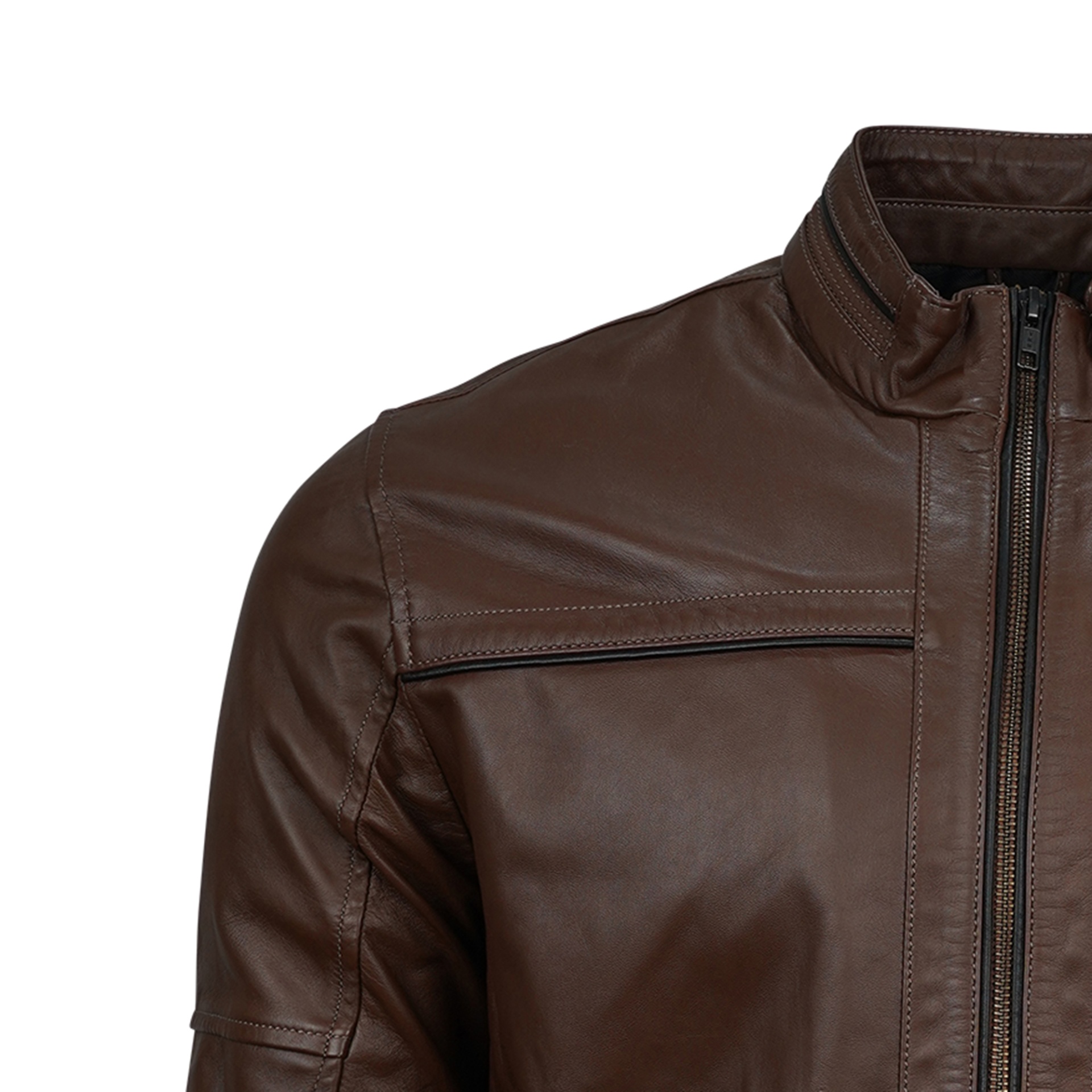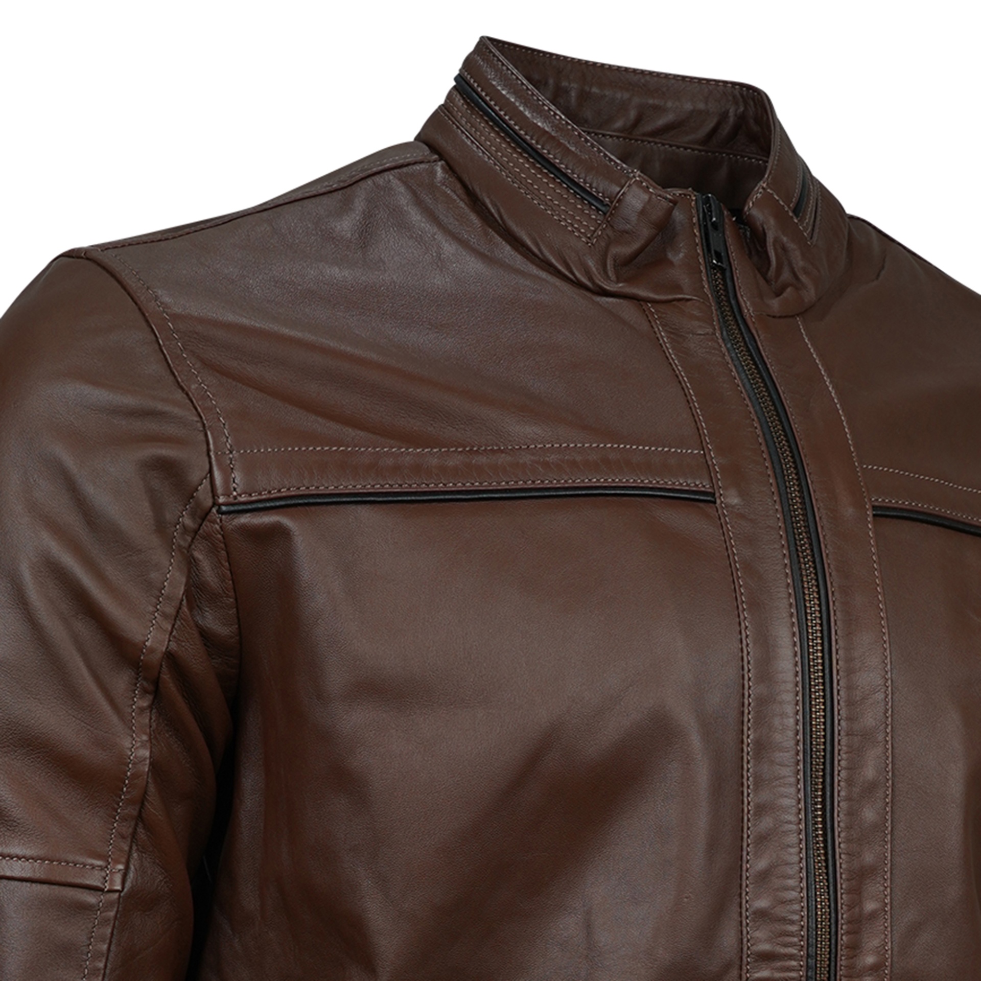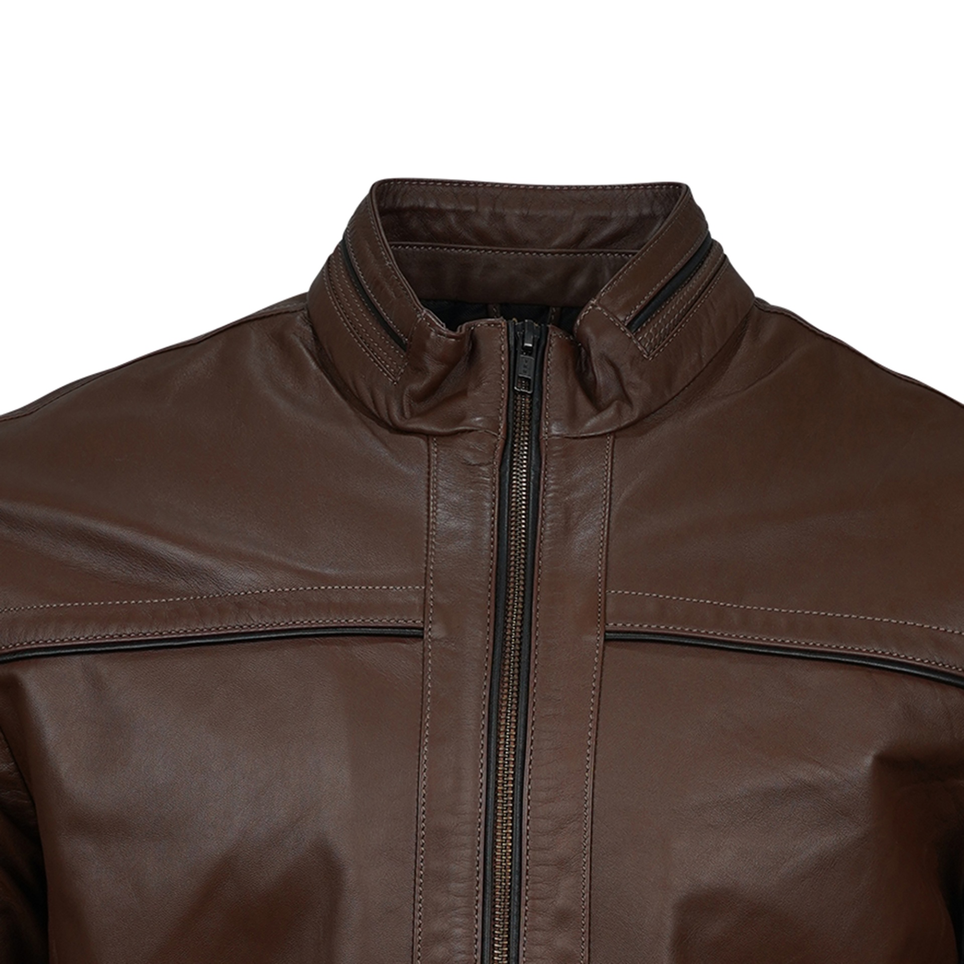 Embrace the open road with the Maverick Men's Leather Jacket in a rich brown tone. Designed for explorers who dare to roam beyond routine, this jacket combines rugged durability with a comfortable fit. Crafted to reflect a bold spirit, it stands as a statement piece for those seeking adventure and authenticity in every journey.